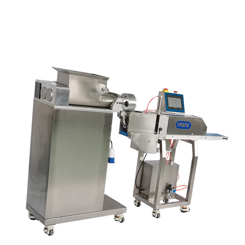 P160 Automatische korstmachine is onze multifunctionele apparatuur voor het maken van producten met een vulling, zoals koekjes, maan cakes, gevulde taarten, gevulde ballen, gevulde dadelsreepjes, enzovoort. De korstmachine kan ronde, bal-, kegel-, reep- en strookvormen maken, enz. Dus de korstmachine kan ook reepjesproducten maken. Het kan geen hard deeg maken, maar het is voldoende voor het maken van normale producten.