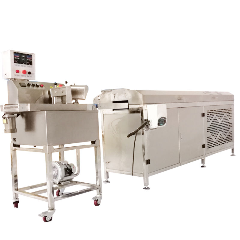 Voedsel gecoat door kleine chocolade omhulmachine :